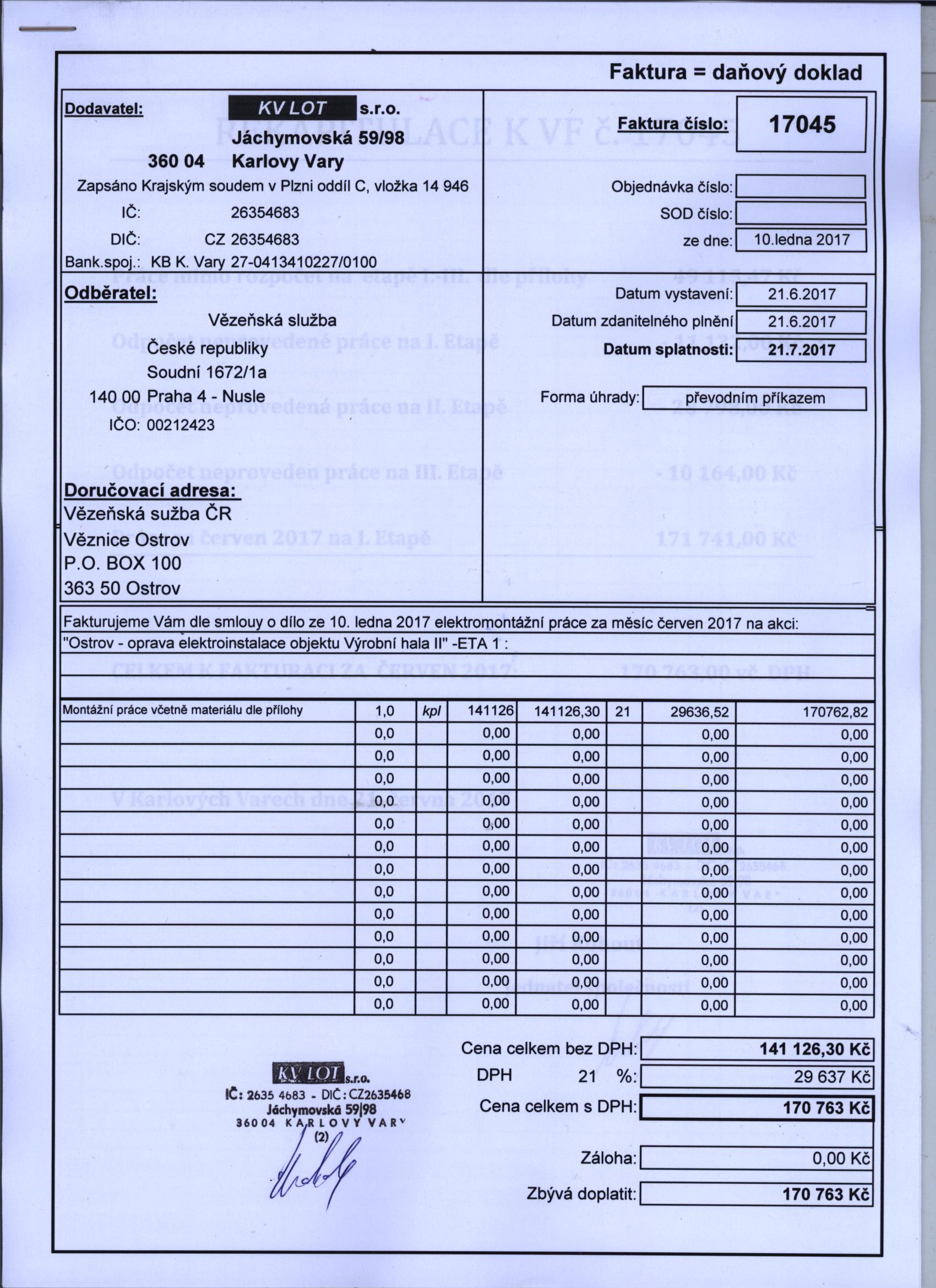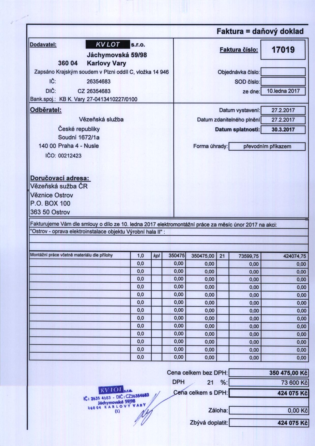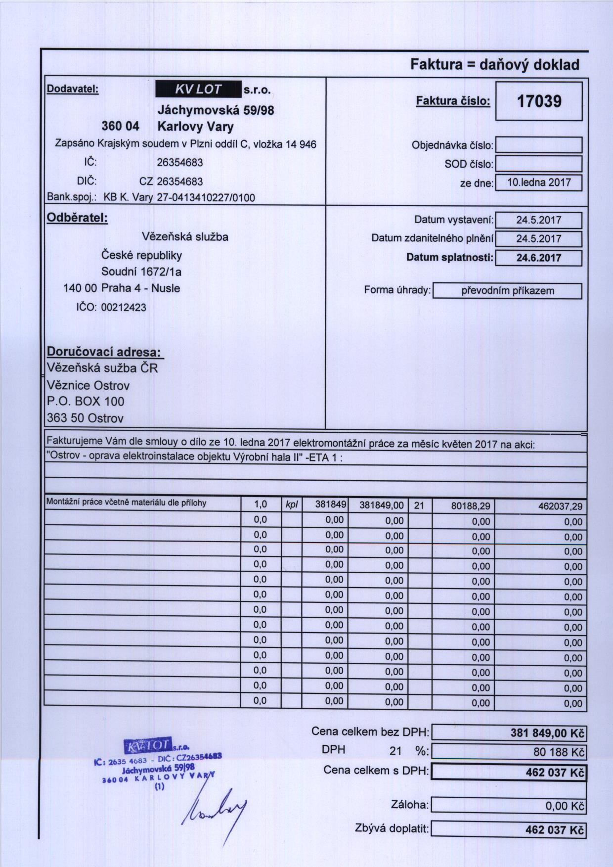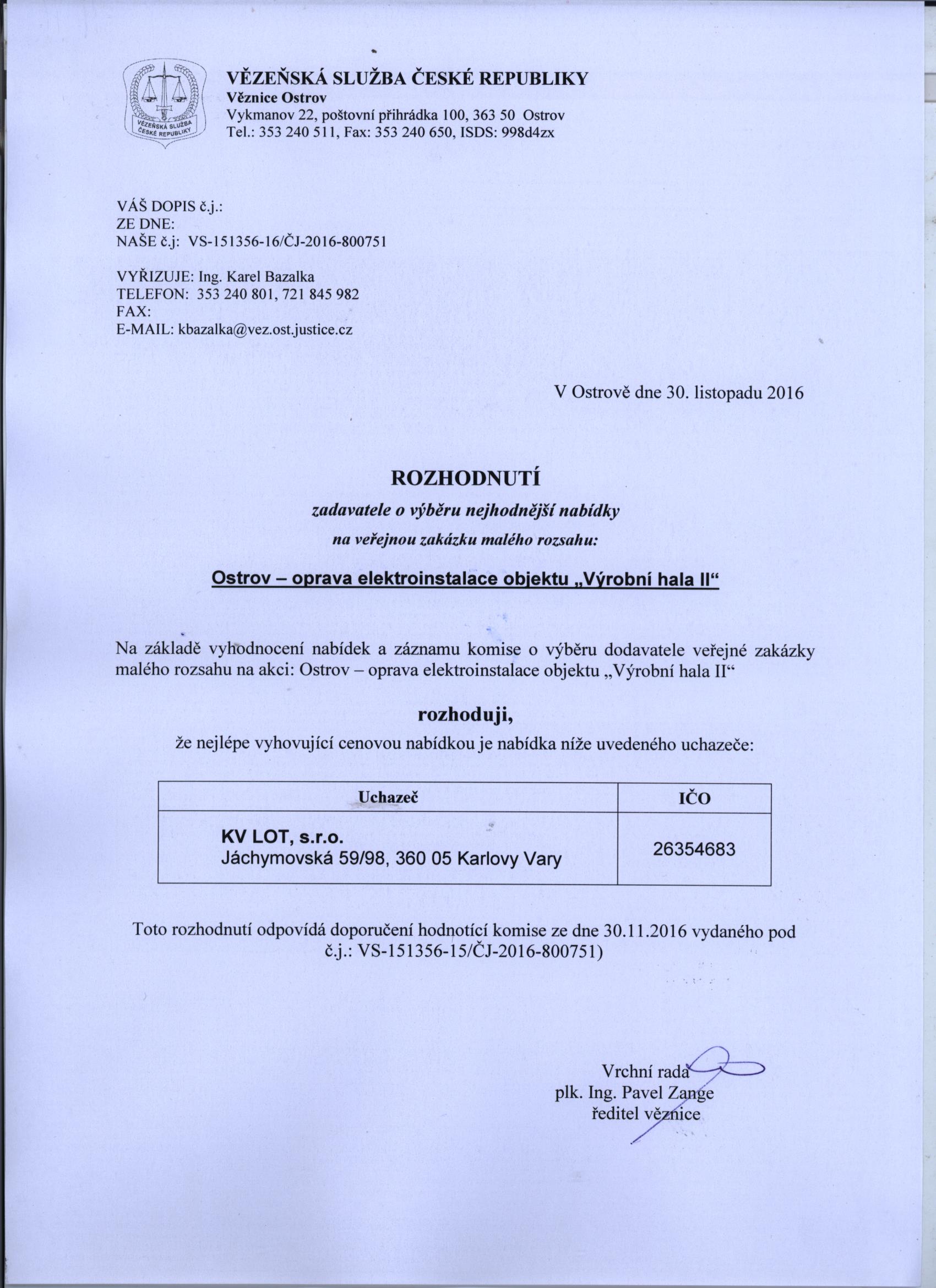 Název: Ostrov - oprava elektroinstalace objektu "Výrobní hala II"