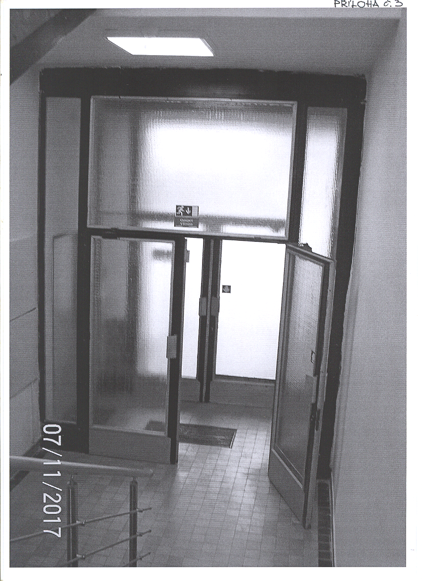 Stručný popis předmětu: Kompletní oprava výměnou vstupních stěn, resp. dveří do admin. budovy. Celoprosklené stěny s vsazenými dvoukřídlými posuvnými dveřmi.