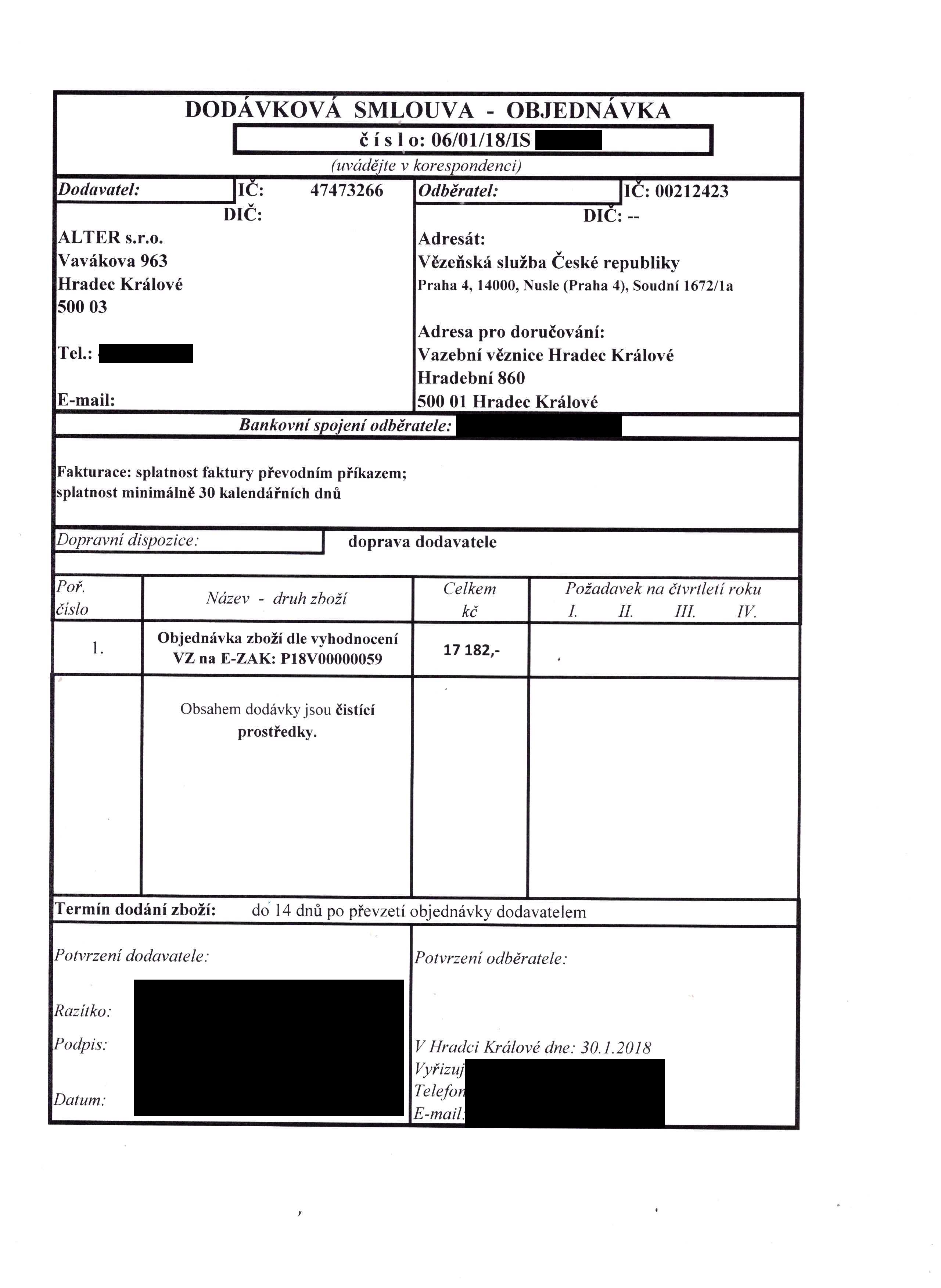 - Druh veřejné zakázky: Dodávky