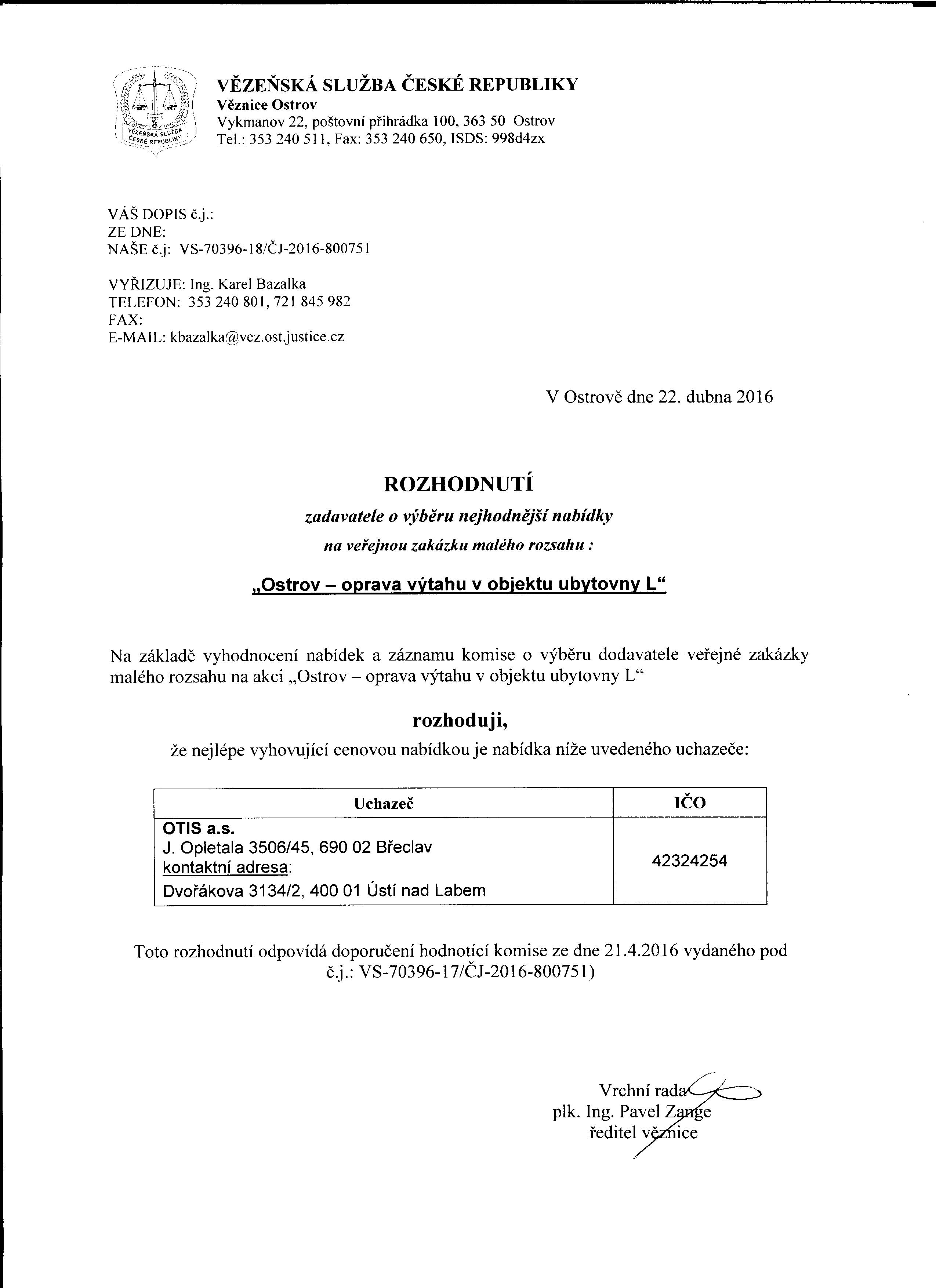rozhodnztí o výběru | ostatní dokumentace - veřejná |