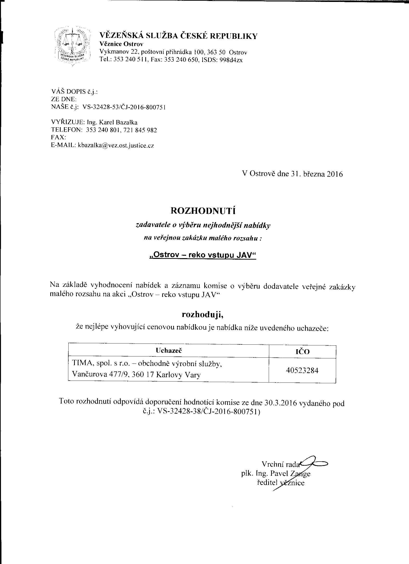 | Název: | rozhodnutí o výběru dodavatele |