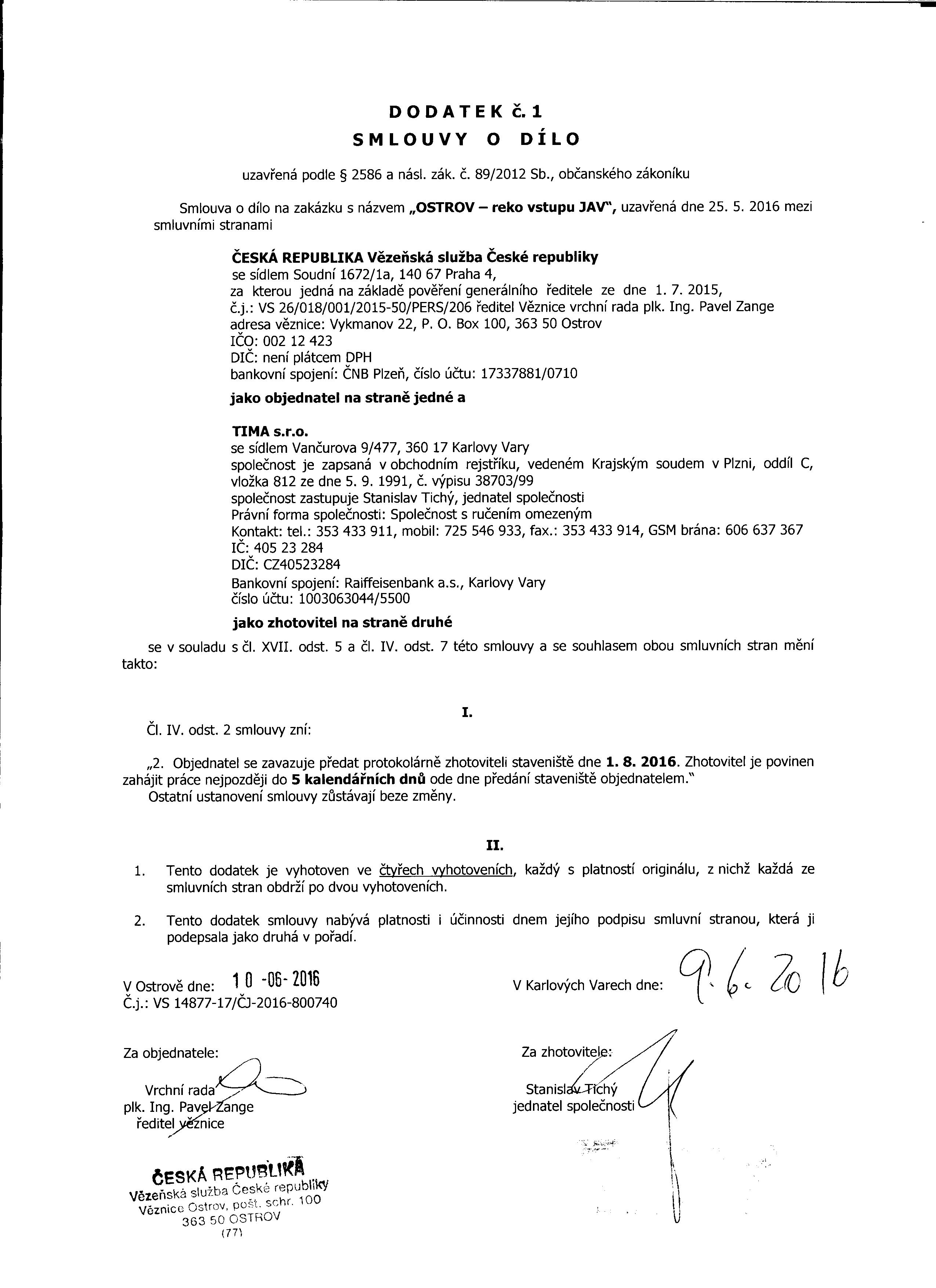 dodatek č.1 k SoD ze dne 25.5.2016 | ostatní dokumentace - veřejná |