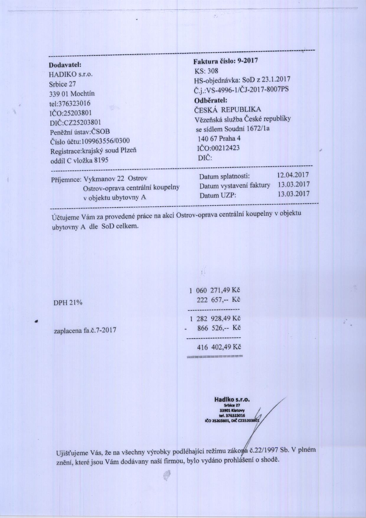 | Název: | faktura č. 9-2017 (závěrečná faktura) |
