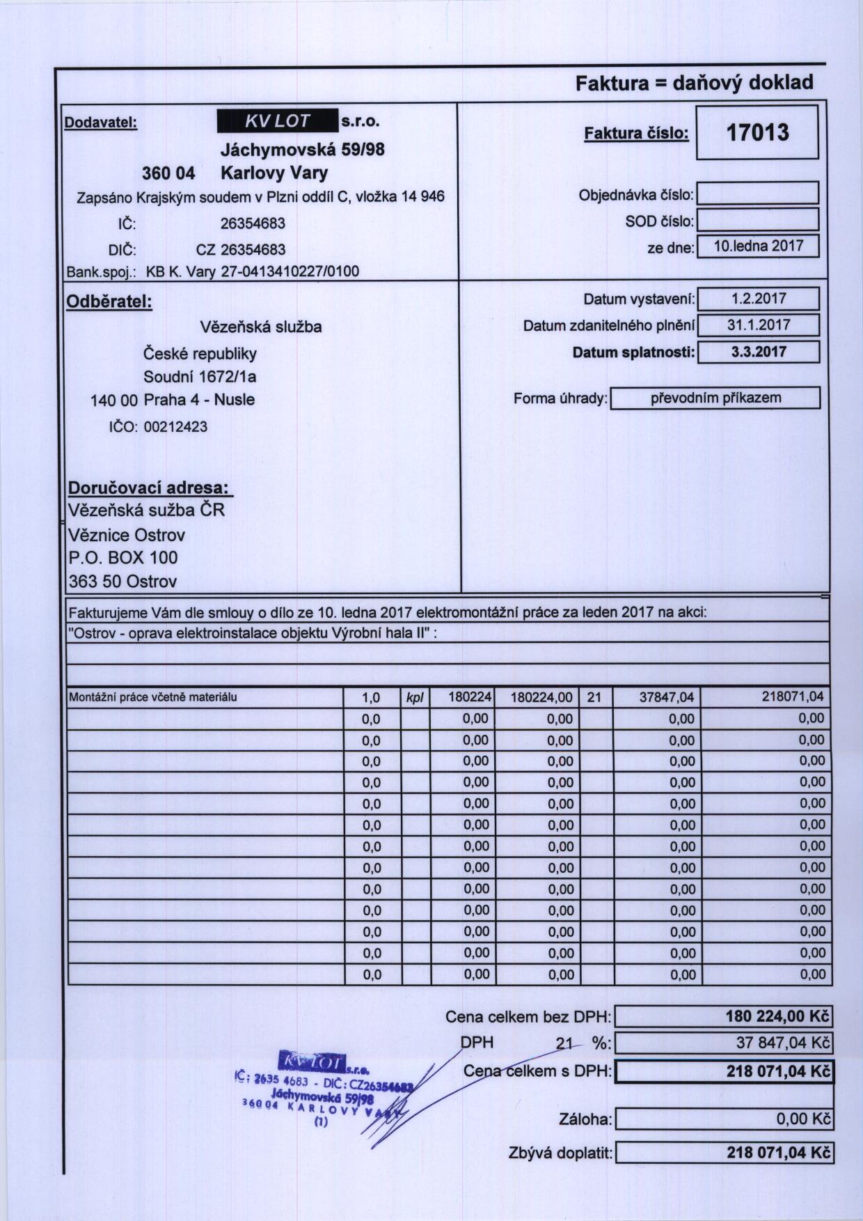 faktura č. 17013 | ostatní dokumentace - veřejná |