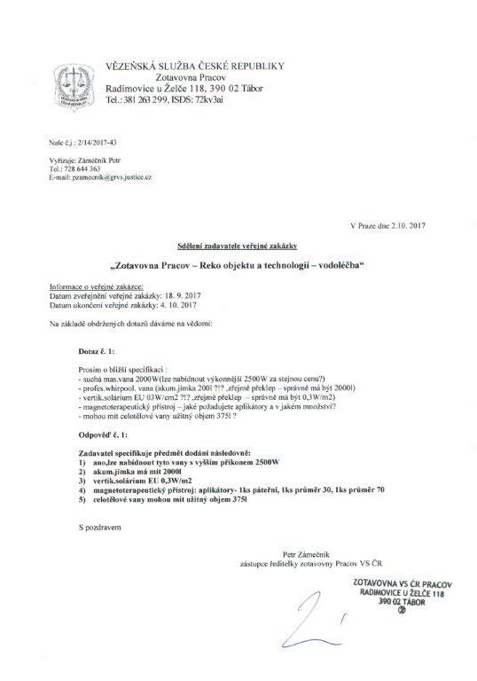 | Název: | Sdělení zadavatele |