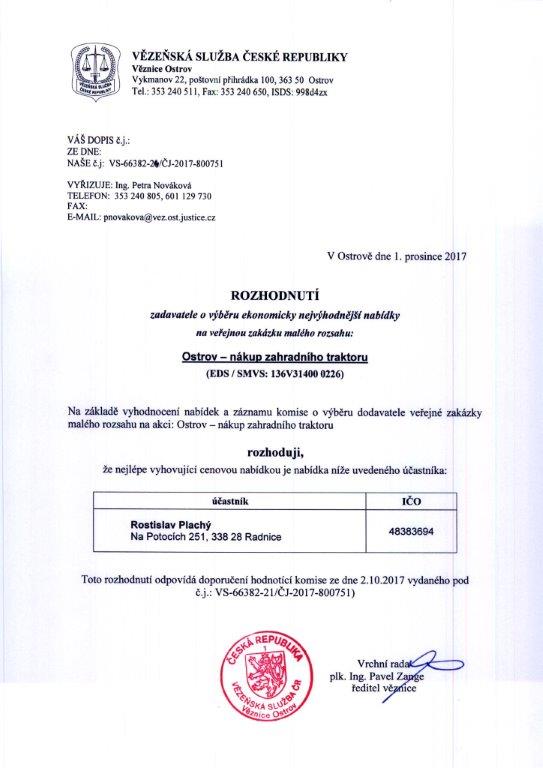 rozhodnutí o výběru | ostatní dokumentace - veřejná |