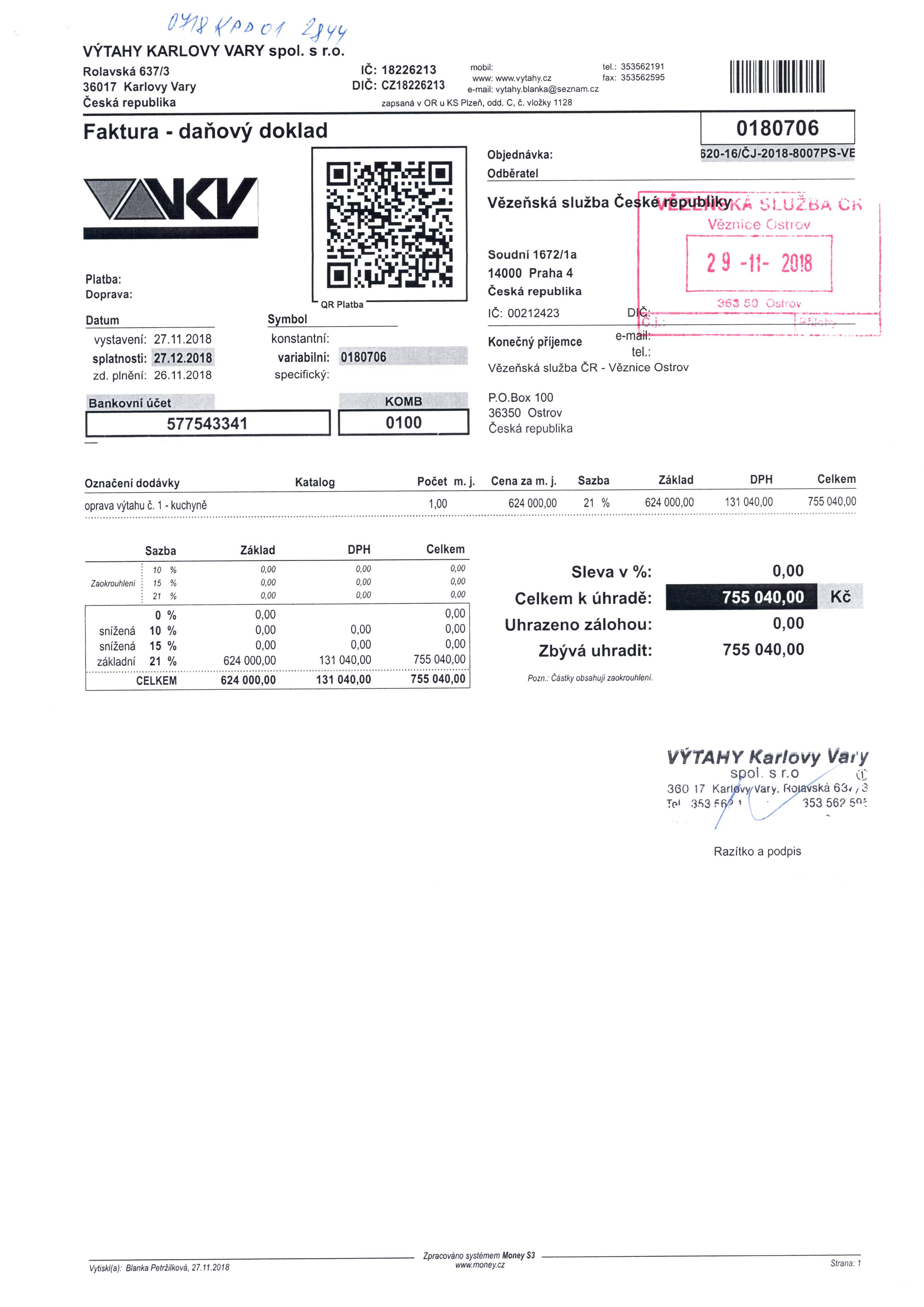 FAKTURA č. 0180706 | ostatní dokumentace - veřejná |