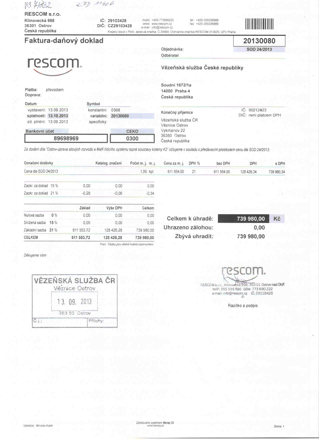 konečná cena - faktura č. 2013080 | ostatní dokumentace - veřejná |