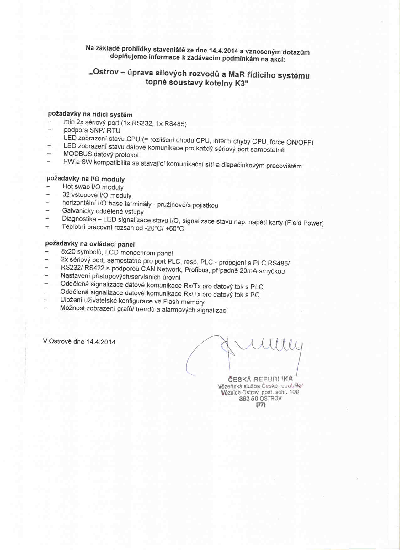 doplňující informace na základě prohlídky staveniště ze dne 14.4.2014 |